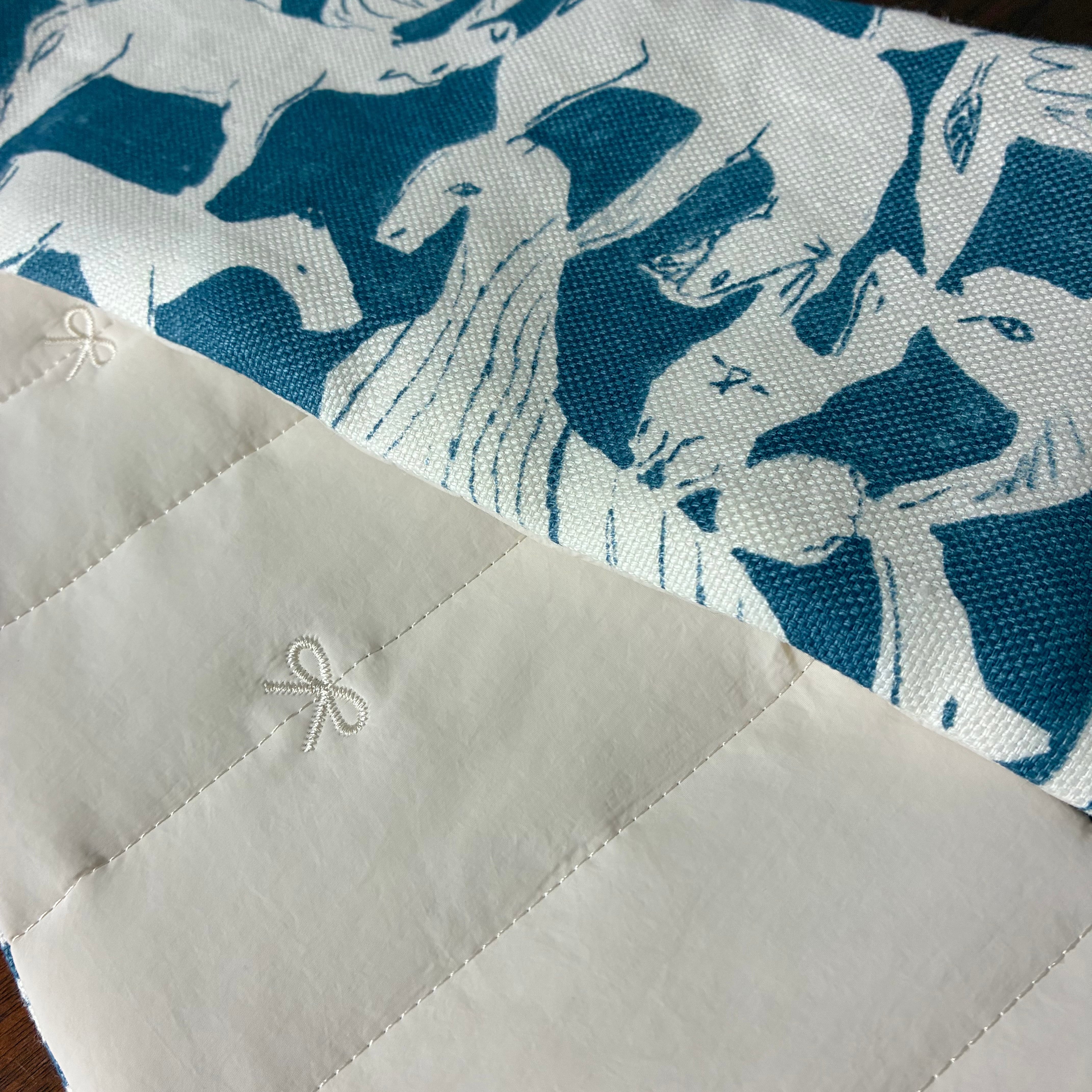 ミナ ペルホネンの美しい「life puzzle」の図案が印象的な、フルート専用のマットです。